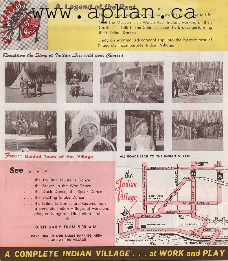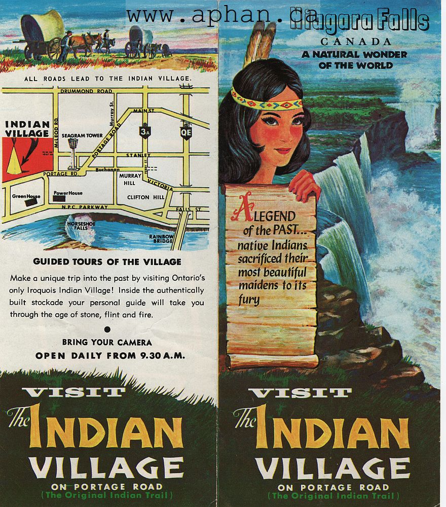 The Indian Village was located on Portage Rd in Niagara Falls. It was a smaller park focusing on the life and ways of the Iroquois Indians. The attraction was short lived and the land was later acquired by John Holer for his Marine Wonderland Park (Marineland & Game Farm/Marineland Canada/Marineland Niagara). This was not the only indian village in Niagara over the years.