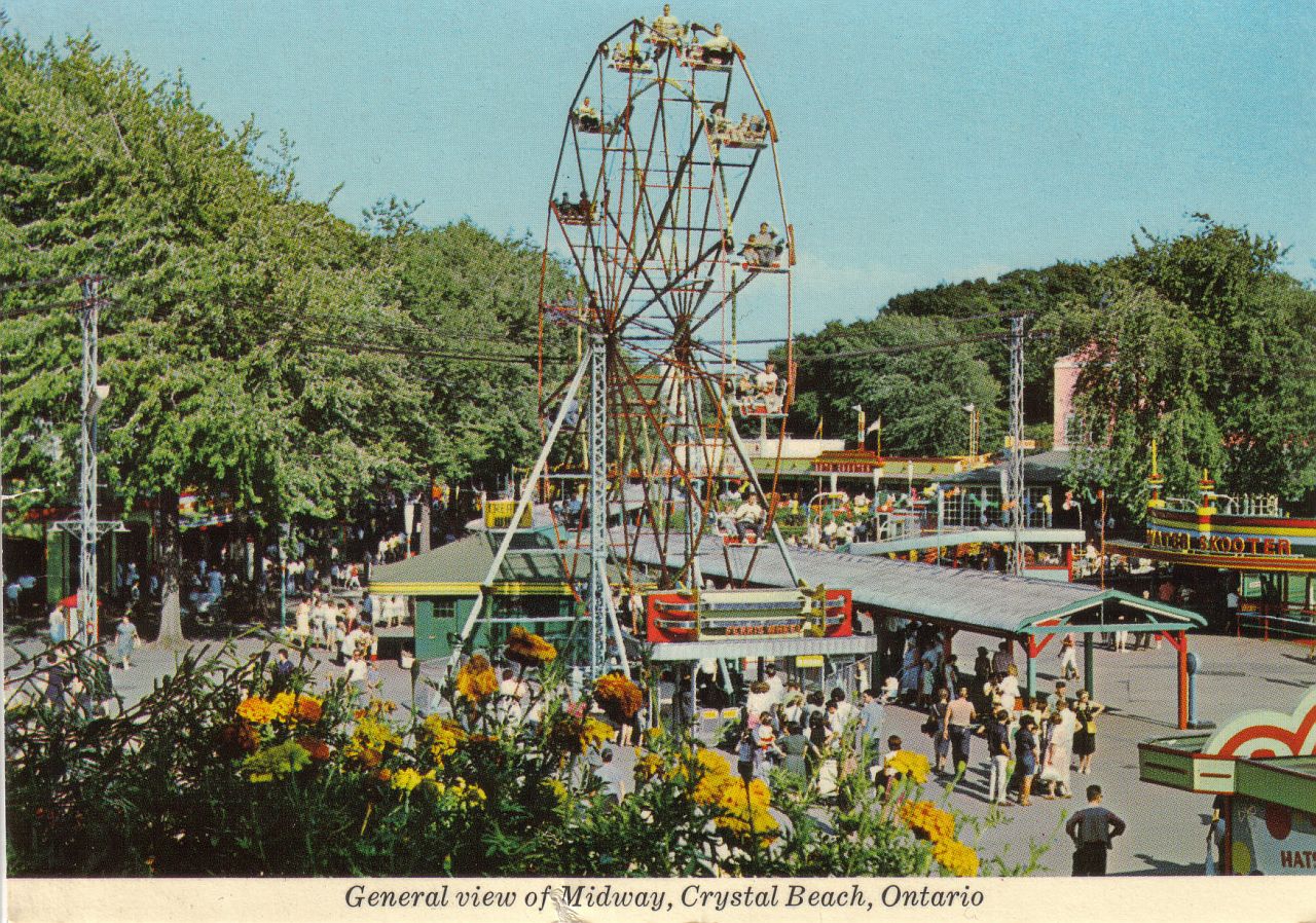 Art deco abounds in this shot of the midway with the 14 seat ferris wheel at the focal point. Obviously taken during a peak in visitors, as the midway